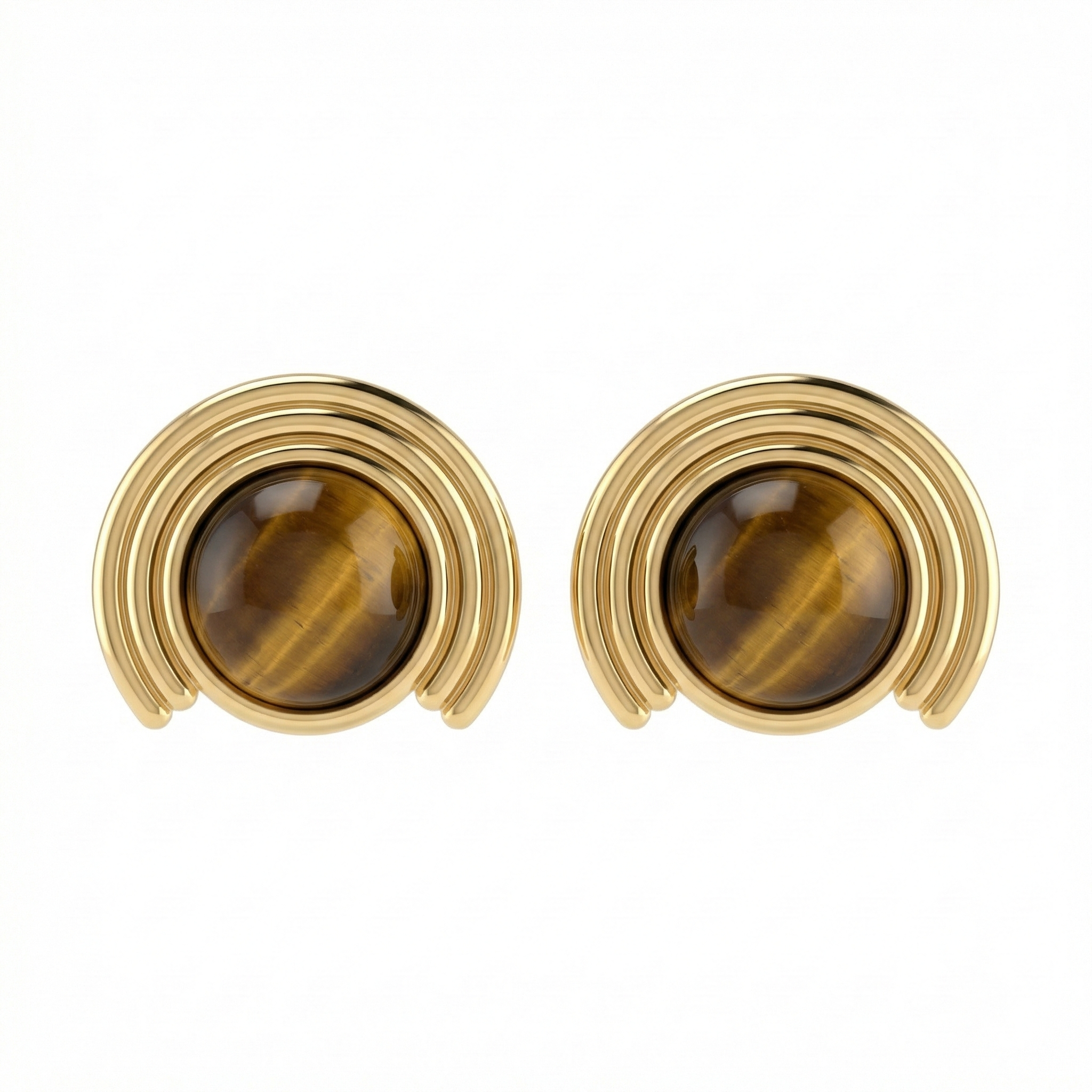 Boucles d’oreilles puces dorées acier inoxydable œil-de-tigre