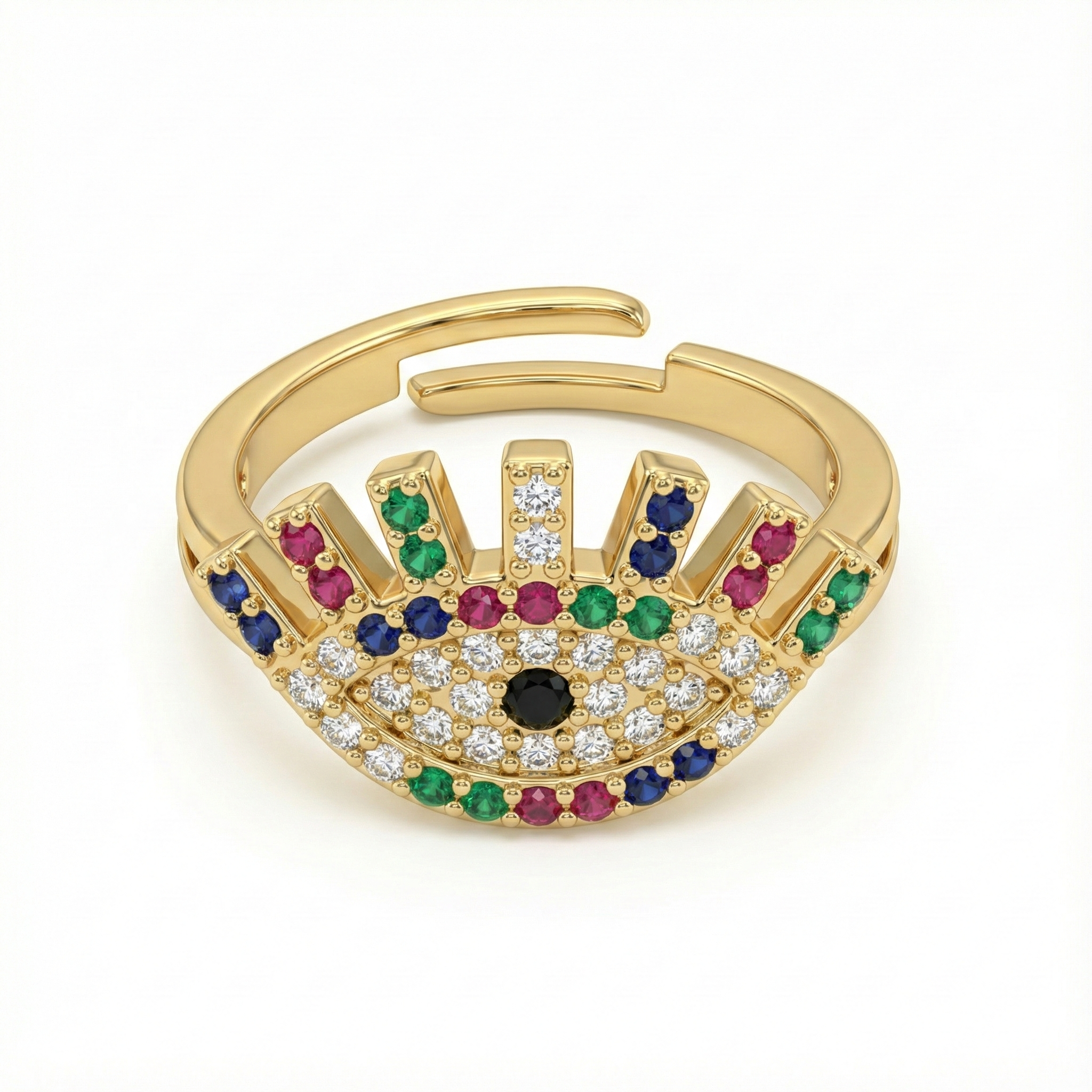 Bague acier inoxydable doré œil protecteur émail multicolore