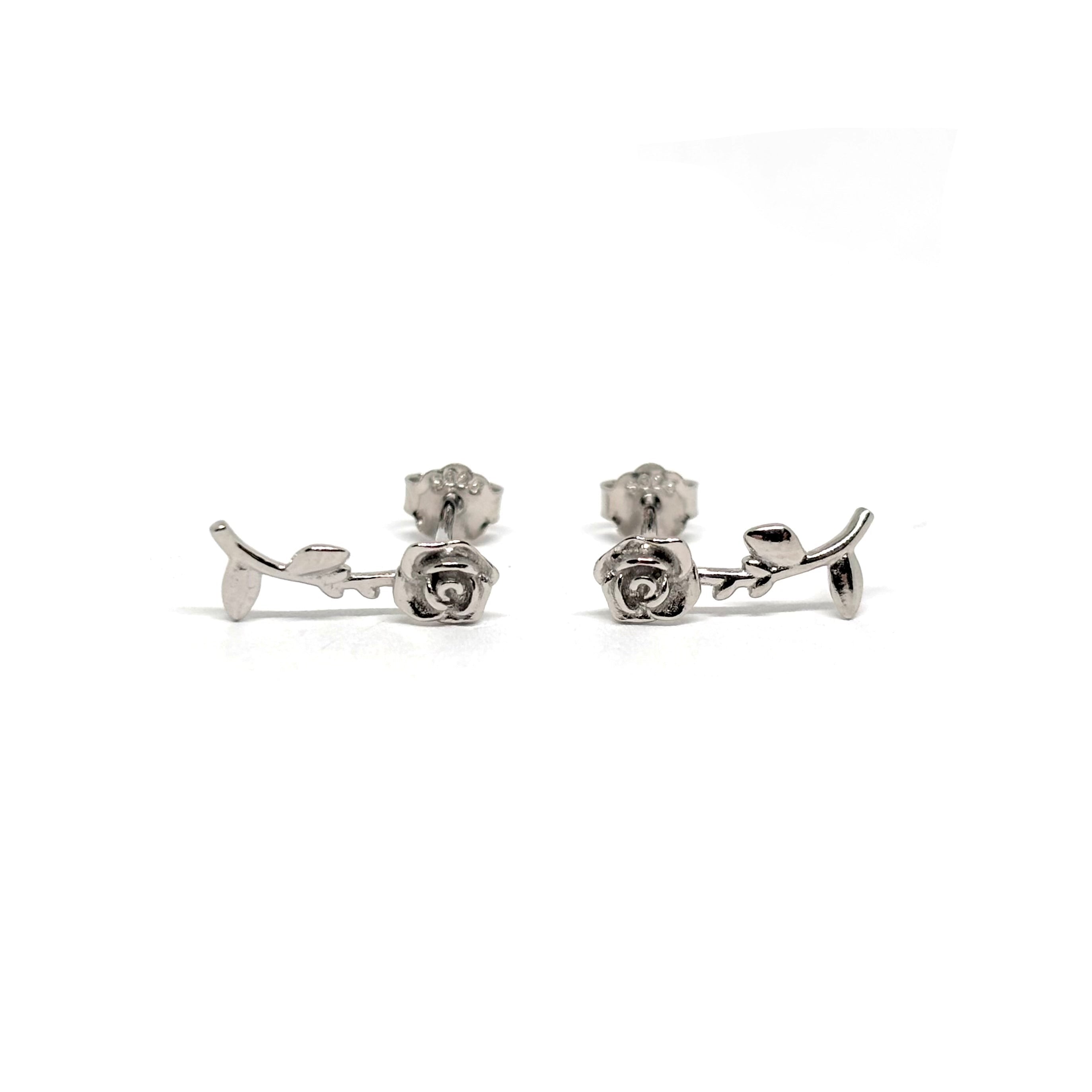Boucles d’oreilles puces argent 925 rose feuille et pétales