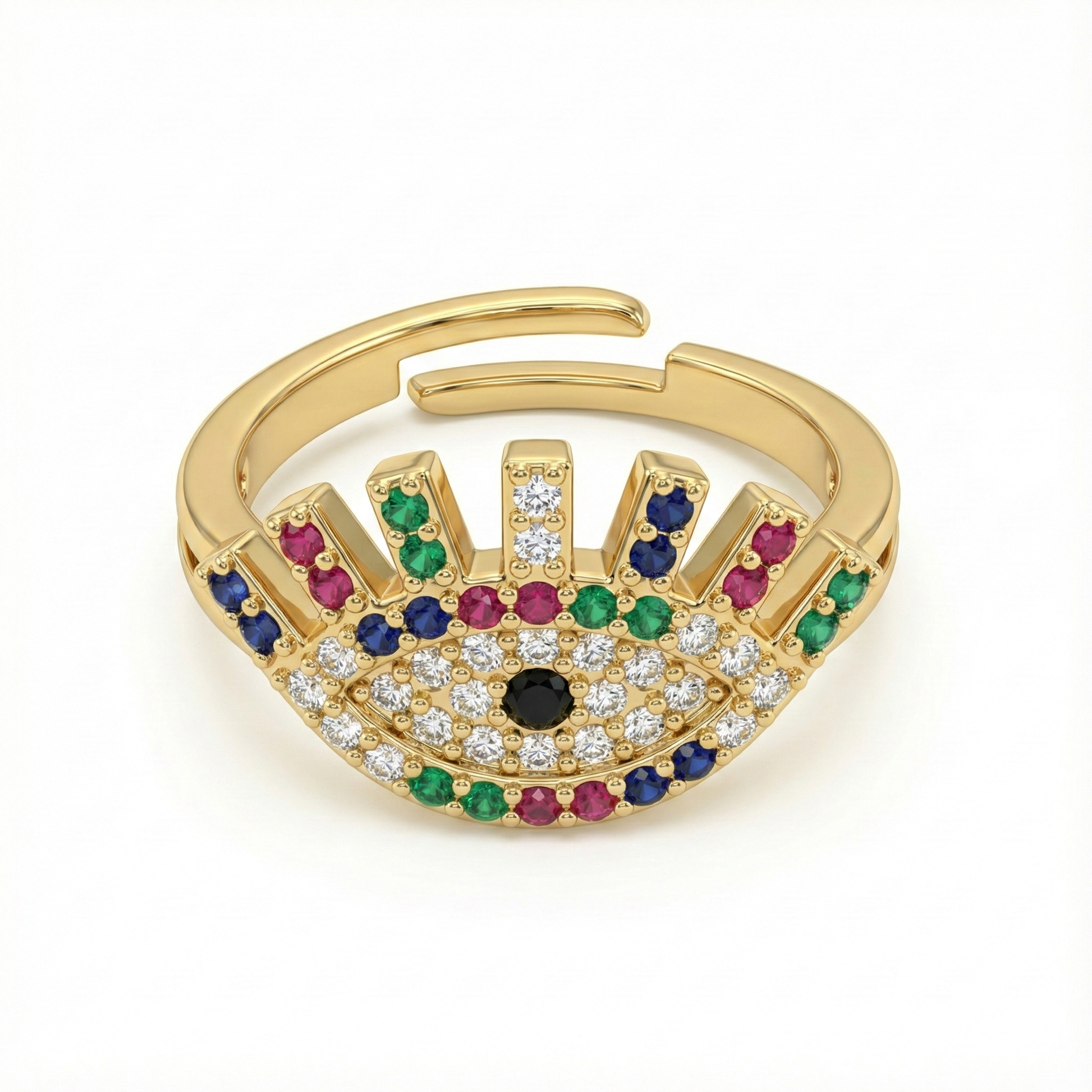 Bague acier inoxydable doré œil protecteur multicolore