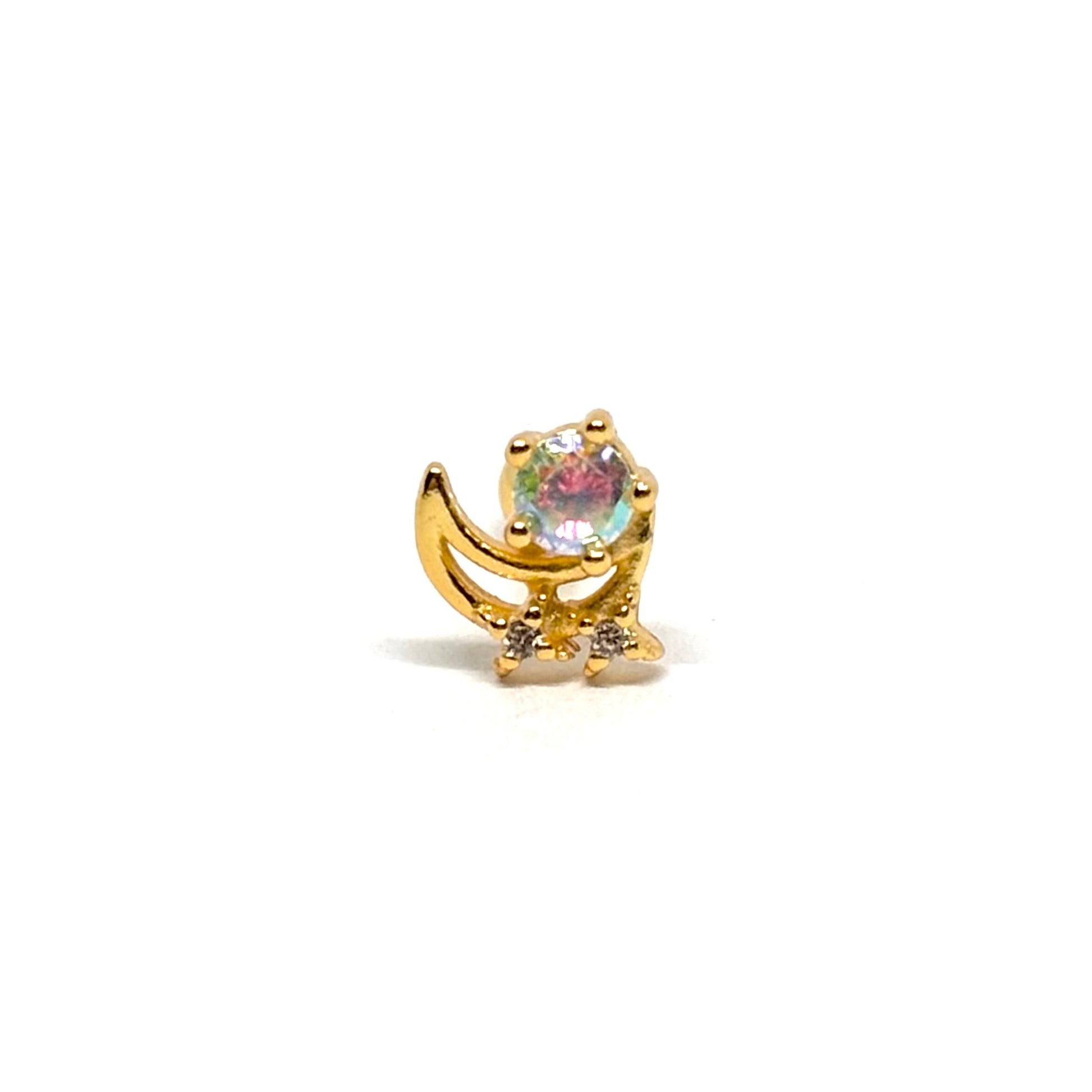 Design : Petit croissant de lune (0,8 cm) orné d’un zircon irisé, inspiré des aurores boréales, symbole de féminité, de mystère et de connexion céleste.